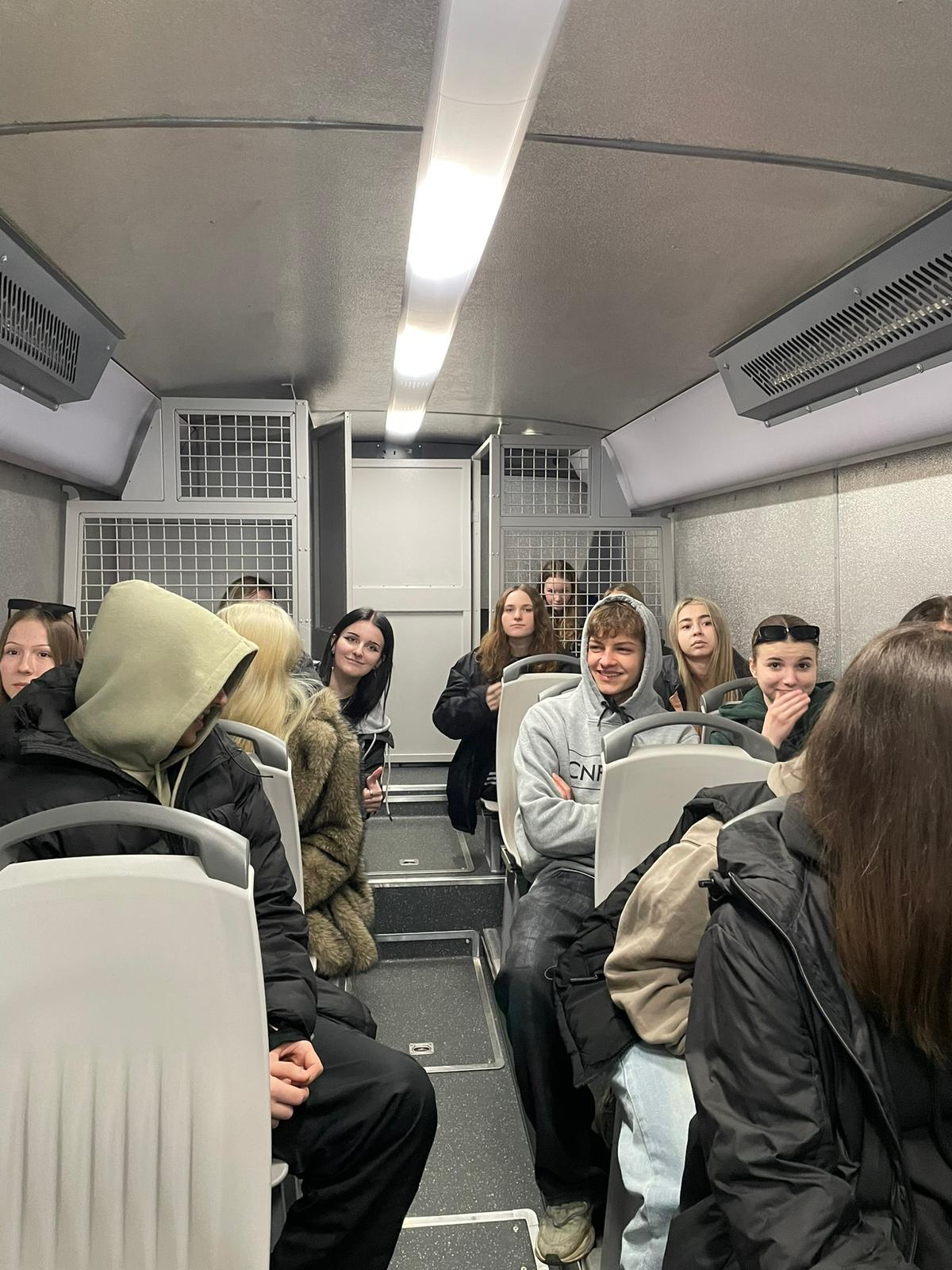 Kromě toho se studenti zúčastnili prezentace Vězeňské služby ČR před budovou soudu, která zahrnovala ukázku techniky, výzbroje a výstroje. Nejzajímavější byla možnost prohlédnout si vězeňský autobus a lépe pochopit, jak probíhá transfer vězňů.